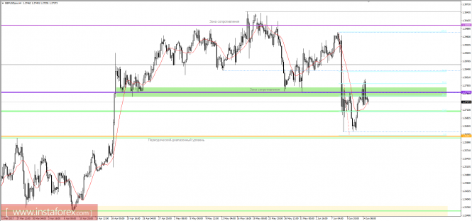 Красная линия и гистограмма с белыми барами в окне индикаторов.Материал предоставлен компанией InstaForex - www.instaforex.comТехнический анализ и торговые рекомендации по валютной паре GBP/USD на 15 июня 2017 года