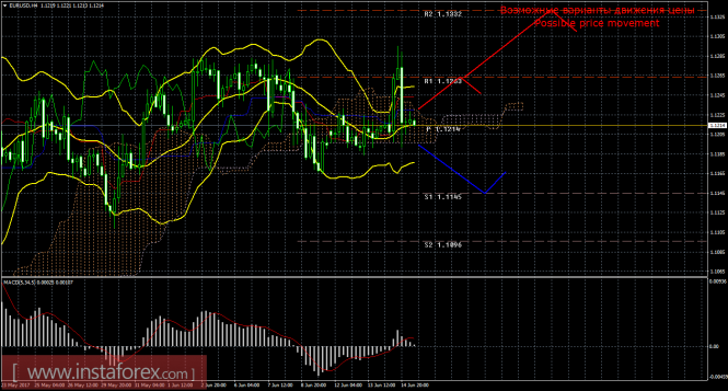 Красная линия и гистограмма с белыми барами в окне индикаторов.Материал предоставлен компанией InstaForex - www.instaforex.comТорговый план на 15.06.2017