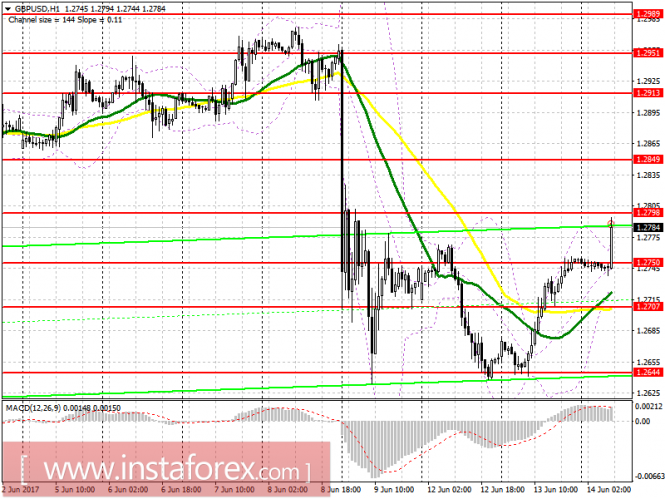 Продавцы также не торопятся возвращаться в рынок, поэтому открывать короткие позиции по фунту лучше всего после неудачного закрепления и возврата под уровень 1.2798, либо сразу на отскок от крупного сопротивления 1.2849. Основной целью продавцов на сегодня будет снижение GBP/USD в район поддержки 1.2750, что поставит под вопрос текущую восходящую тенденцию.