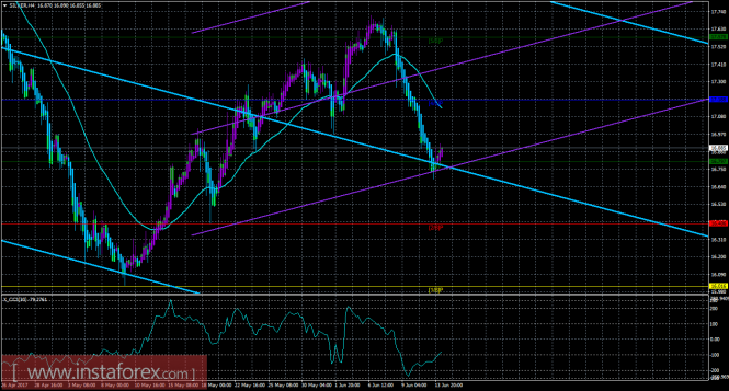 Техническая картина инструмента SILVER по системе «Каналы регрессии» за 14 июня 2017 года