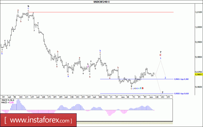 Инструмент продолжает построение волны Е, в С, в (В). В рамках построения волны с, в Е, в С, в (В), повышение котировок предположительно началось с целями, находящимися вплоть до расчетной отметки 114,51, что соответствует 100,0% по Фибоначчи (эта цель еще будет уточнена). Волна с, в b, в Е, в С, в (В) теоретически может усложнить свою внутреннюю волновую структуру еще больше, но на данный момент выглядит вполне завершенной.Материал предоставлен компанией InstaForex - www.instaforex.comВолновой анализ валютной пары USD/CHF за 13 июня 2017 года