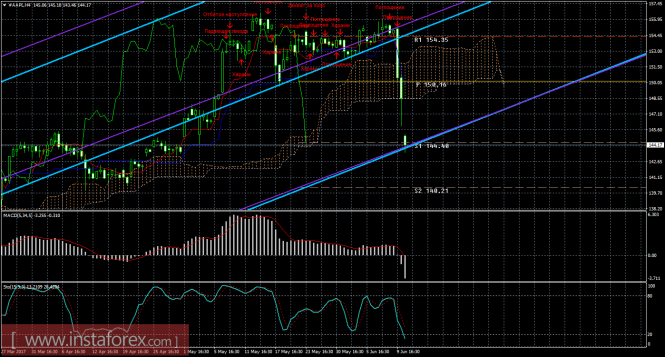 На 15-минутном графике рекомендуется рассматривать ордера на продажу с целью 140,21 при закреплении цены ниже 144,40, ордером Stop Loss выше 144,40 и при направленном вниз MACD.