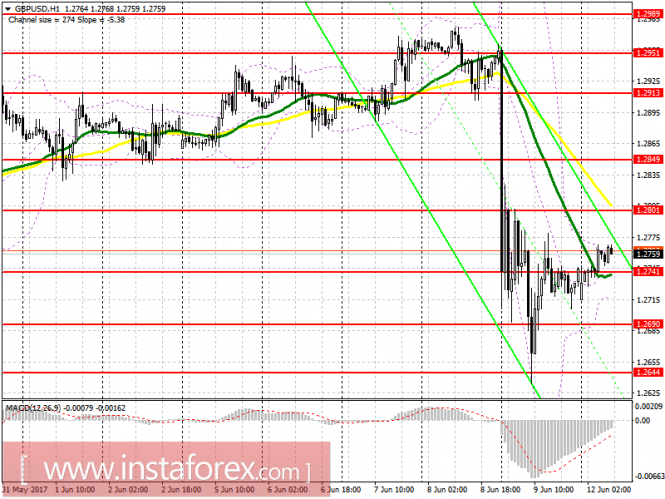 Продавать фунт лучше всего после закрепления ниже уровня 1.2741, что позволит вернуть GBP/USD уже на пятничные поддержки 1.2690 и 1.2644, где советую фиксировать прибыль, так как от этих уровней могут быть коррекционные отскоки вверх. В случае роста фунта в первой половине дня, возвращаться к коротким позициям лучше всего после обновления крупного уровня сопротивления 1.2801.