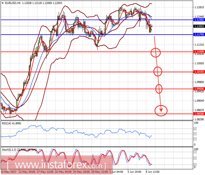 Пара EURUSD торгуется выше отметки 1.1170. И на итогах заседания ЕЦБ, а также из-за повышения ставок в Штатах, вероятнее всего, продолжит падение. Мы ожидаем, что пара упадет к 1.1100, преодолев отметку 1.1230 с перспективой дальнейшего снижения к 1.1020, 1.0950 и 1.0850.