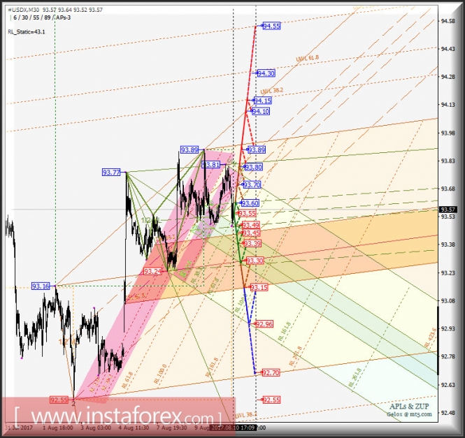 #USDX m30. Развитие движения в период 11 - 15 августа 2017 г. Анализ APLs & ZUP