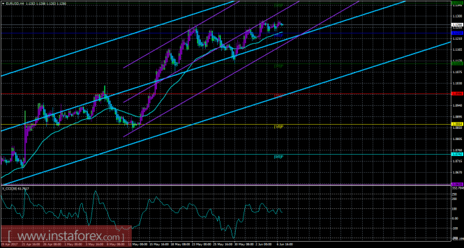Хайкен Аши – индикатор, окрашивающий бары в голубой или фиолетовый цвета.Материал предоставлен компанией InstaForex - www.instaforex.comТехническая картина валютной пары EURUSD по системе «Каналы регрессии» за 7 июня 2017 года