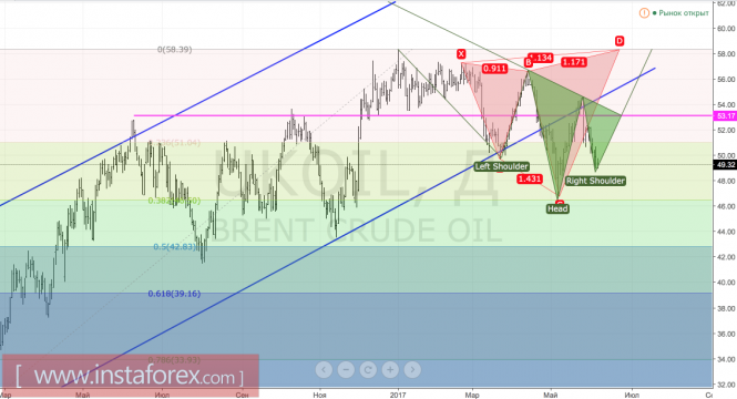 Технически первым необходимым условием для восстановления «бычьего» тренда является возврат котировок Brent выше сопротивления на $51,05 за баррель. Затем можно будет помечтать о штурме уровня $53,15 и активации перевернутого паттерна «Голова и плечи». Пока же нужно признать, что контроль над рынком сохраняют «медведи».