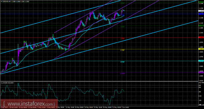 Хайкен Аши – индикатор, окрашивающий бары в голубой или фиолетовый цвета.Материал предоставлен компанией InstaForex - www.instaforex.comТехническая картина валютной пары EURUSD по системе «Каналы регрессии» за 5 июня мая 2017 года