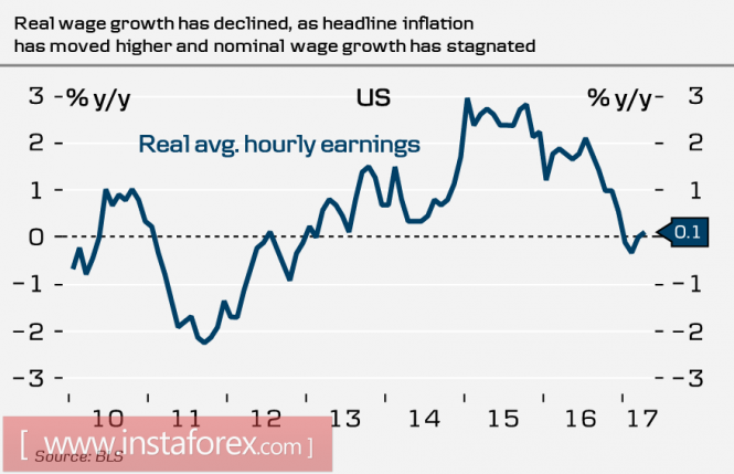 Также нужно добавить, что второй важнейший показатель, отслеживаемый рынком, темпы роста средней заработной платы, также оказался хуже прогнозов. Рост в годовом исчислении составил 2.5%, как и месяц назад, в то время как рынок ждал увеличения до 2.6%. Слабые темпы роста заработной платы могут сыграть негативную роль в замедлении потребительской активности и в конечном итоге скажутся на темпах роста инфляции.