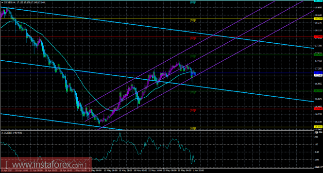 Материал предоставлен компанией InstaForex - www.instaforex.comТехническая картина инструмента SILVER по системе «Каналы регрессии» за 2 июня 2017 года