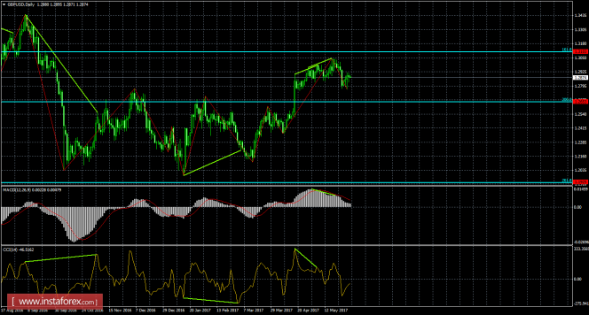 На 24-часовом графике медвежья дивергенция по-прежнему позволяет ожидать продолжение падения в направлении уровня коррекции 200,0% - 1,2653. Медвежья дивергенция у индикатора MACD остается в силе: последний пик котировок выше предыдущего, а аналогичный пик индикатора ниже. Проход последнего дивергенционного пика сработает в пользу английского фунта и возобновления роста котировок в направлении уровня Фибо 161,8% - 1,3103. Закрепление курса над уровнем коррекции 161,8% повысит шансы на продолжение роста в направлении уровня Фибо 100,0% - 1,3835.