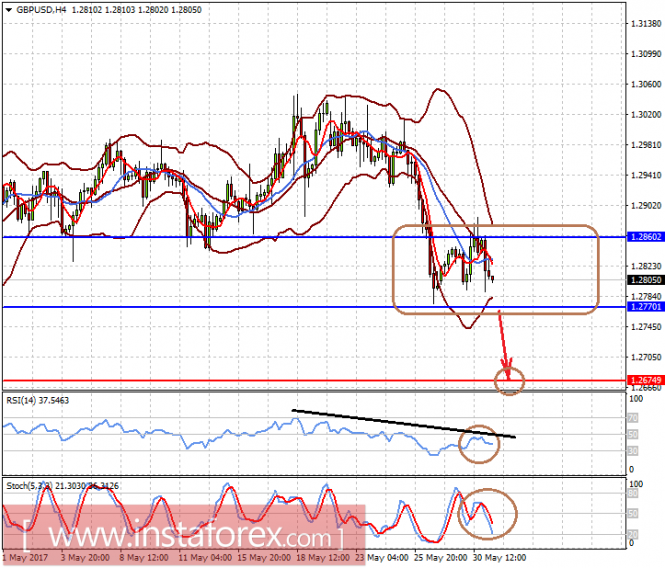 Пара GBPUSD торгуется в узком диапазоне на волне неопределенности итогов парламентских выборов в Британии 8 июня. Пара может так в нем и остаться до этого события, но, если цена упадет ниже отметки 1.2727, – это может привести к 1.2675.