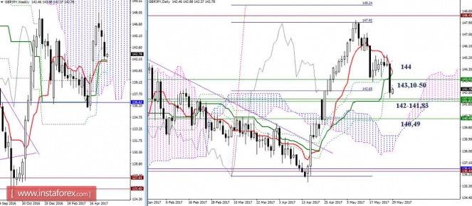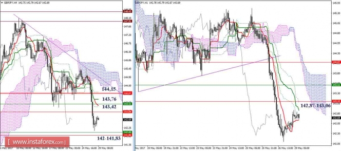 Материал предоставлен компанией InstaForex - www.instaforex.comДневной обзор GBP/JPY и EUR/JPY на 29.05.17. Индикатор Ишимоку
