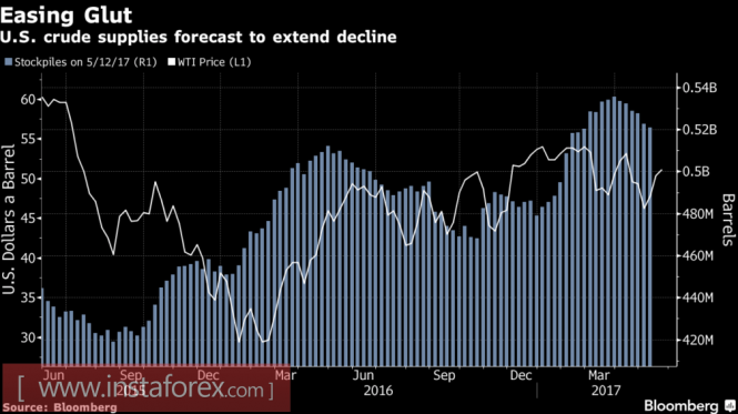 Поддержку Brent и WTI оказывает прогноз специалистов, опрошенных Bloomberg, согласно которому американские запасы черного золота по итогам недели к 19 мая снизились седьмой раз подряд. Показатель неизменно падает с марта, когда был достигнут многолетний максимум.