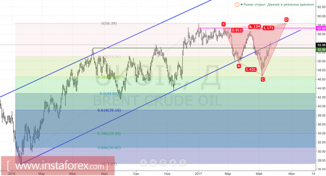 Технически для продолжения северного похода «быкам» по североморскому сорту для начала требуется закрепиться выше нижней границы восходящего торгового канала, что увеличит шансы реализации таргета на 113% по перевернутому паттерну «Акула». Он расположен вблизи отметки $58,4 за баррель.