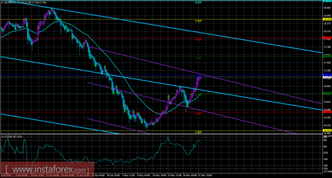 Техническая картина инструмента SILVER по системе «Каналы регрессии» за 23 мая 2017 года