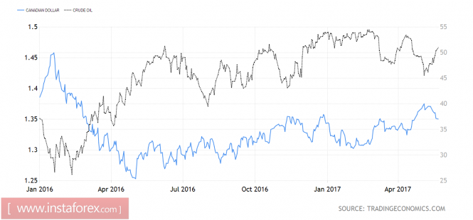 Обвинения Трампа в связях с Россией, якобы переданные секретная информация и записка с просьбой о прекращении расследования Джеймса Коми, серьезно подорвали авторитет президента США. Индекс доллара, подскочивший в начале 2017-го до 14-летнего пика благодаря надеждам на разгон экономики, растерял все свои достижения после выборов и, похоже, уже не вернется к многолетним максимумам. Это обстоятельство позволяет «медведям» по USD/CAD атаковать. Тем более что доходность казначейских бондов США идет вниз, стоимость фондирования снижается, а американские инвесторы все чаще поглядывают на фондовый рынок Страны кленового листа.