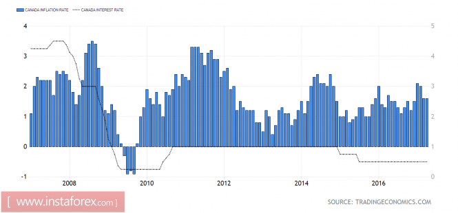 Динамика ставки овернайт и канадской инфляции