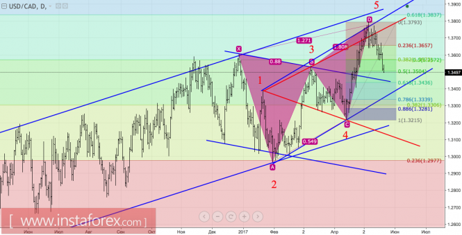 Технически отскок от уровней 50% и 61,8% от волны CD паттерна «Акула» будет свидетельствовать о его трансформации в 5-0 и создаст предпосылки для роста котировок USD/CAD.
