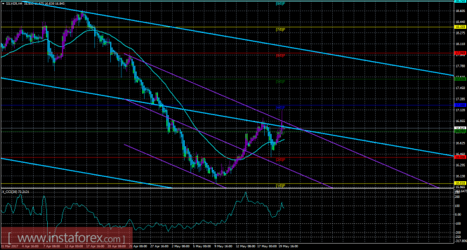 Материал предоставлен компанией InstaForex - www.instaforex.comТехническая картина инструмента SILVER по системе «Каналы регрессии» за 22 мая 2017 года