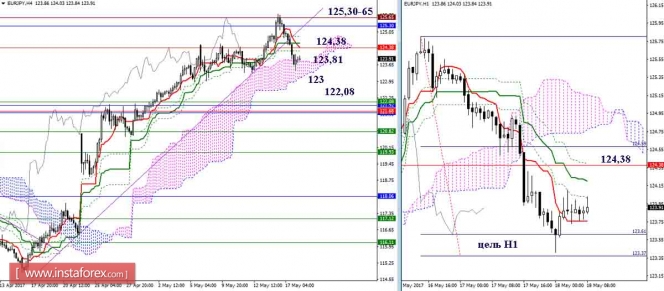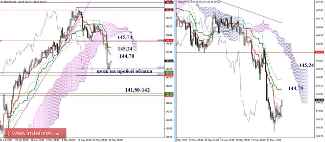 Материал предоставлен компанией InstaForex - www.instaforex.comДневной обзор GBP/JPY и EUR/JPY на 18.05.17. Индикатор Ишимоку