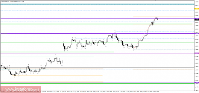 2017-05-18 09:04:08 (читать в оригинале)Валютная пара EURUSD с начала недели сумела пролететь более чем 200 пунктов, прижимая нас к важном уровню уровню сопротивления 1,1150. Сейчас мы видим, как котировка замерла, образуя замедление возле уровня. Вероятно предполагать, что "бычий" потенциал в самое ближайшее время спадет и "медведи" постараются вернуться в рынок, формируя полноценную коррекцию на рынке. В случае совпадения прогноза нас ожидает движение к значениям 1,1050/1,1000.