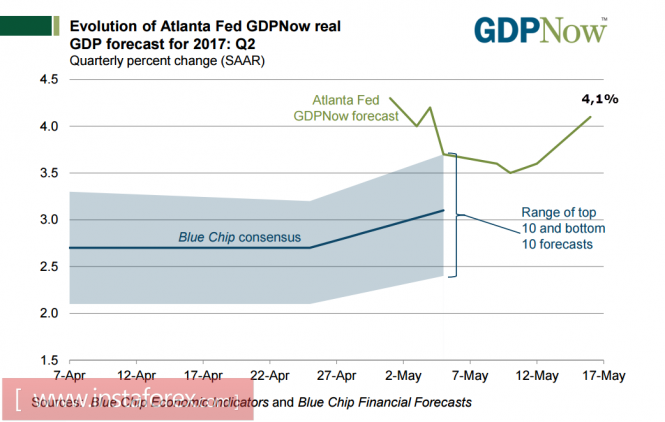Рост индекса промпроизводства позволил ФРБ Атланты улучшить прогноз по росту ВВП во 2 квартале до 4.1%, позитивной оценке не помешали даже более слабые, чем ожидалось, данные по жилищному строительству.