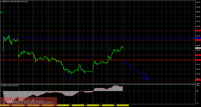 На 15-минутном графике рекомендуется рассматривать ордера на покупку с целью 158,60 при закреплении цены выше 154,33 (Тенкан-сен), ордером Stop Loss ниже 154,33. Разворот MACD вниз – новый виток коррекции.