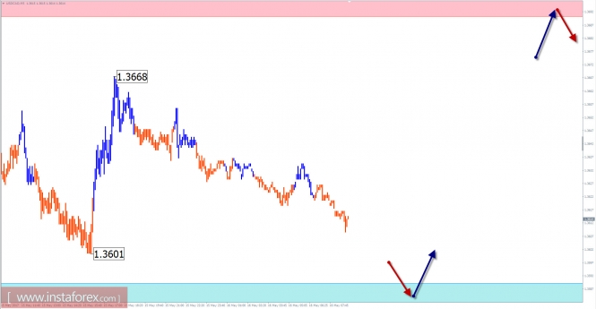 Уровни поддержки и сопротивления – красные горизонтальные линии.Материал предоставлен компанией InstaForex - www.instaforex.comТорговый обзор на 16 мая по упрощенному волновому анализу