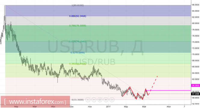Технически если «быкам» по USD/RUB удастся вернуться к сопротивлению на 58,35, а затем и обновить майский максимум, то реализация паттерна «Дракон» способна увести котировки к отметке 62.