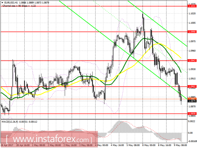 Красная линия и гистограмма с белыми барами в окне индикаторов.Материал предоставлен компанией InstaForex - www.instaforex.comТехнический анализ и торговые рекомендации по валютной паре EUR/USD на 10 мая 2017 года