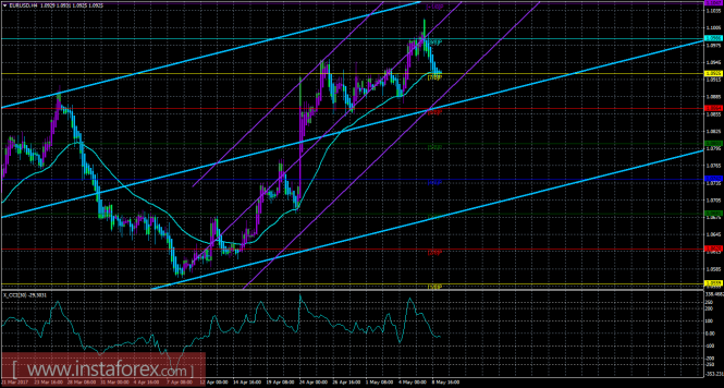 Хайкен Аши – индикатор, окрашивающий бары в голубой или фиолетовый цвета.Материал предоставлен компанией InstaForex - www.instaforex.comТехническая картина валютной пары EURUSD по системе «Каналы регрессии» за 9 мая 2017 года