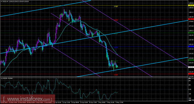 Техническая картина инструмента GOLD по системе «Каналы регрессии» за 9 мая 2017 года