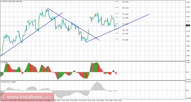 Красная линия и гистограмма с белыми барами в окне индикаторов.Материал предоставлен компанией InstaForex - www.instaforex.comТехнический анализ природного газа за 9 мая 2017 года