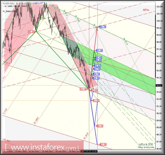 #USDX Daily. Перспективы развития движения в августе-сентябре 2017 г. Анализ APLs & ZUP
