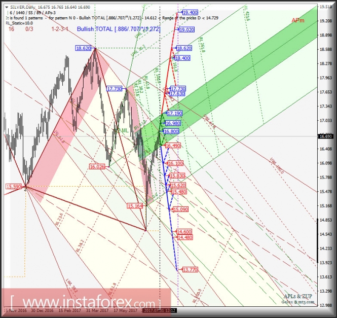 пробой уровня сопротивления 17.190 (ISL61.8 Minute) -> вариант развития восходящего движения Silver Spot к целям -> контрольная линия UTL (17.630) вил операционного масштаба Minor <-> локальный maximum 17.730 <-> конечная линия FSL (18.400) вил операционного масштаба Minute <-> maximum 18.620, детали показаны на графике.