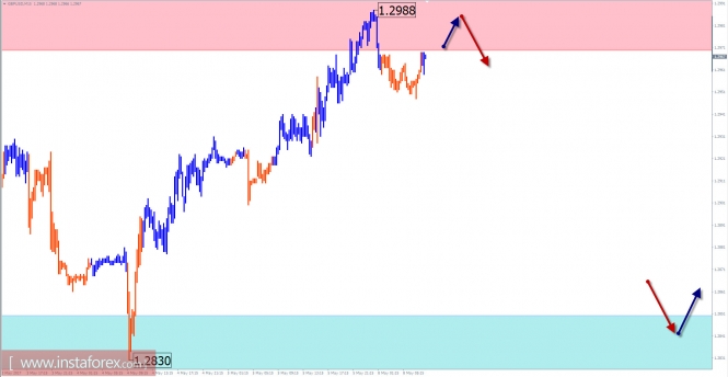 На ближайшей торговой сессии ожидается завершение нисходящего направления движения и формирование разворота. Ближе к концу дня возрастет вероятность восходящего настроя ценовых колебаний пары и возврат котировок в район зоны сопротивления.
