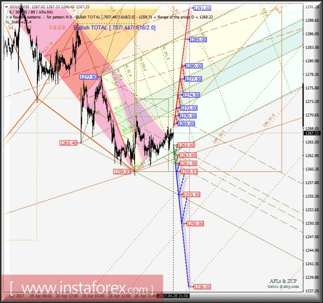 Материал предоставлен компанией InstaForex - www.instaforex.comGold Spot m30. Развитие движения в период 01_03 мая 2017 г. Анализ APLs & ZUP