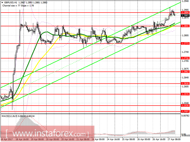 Покупатель пытается зацепиться за 1.2894, и повторный возврат на эту область откроет хорошие перспективы для фунта по росту в районы 1.2971 и 1.3014, где советую фиксировать прибыль. В случае резкого падения фунта возвращаться к покупкам можно только после обновления 1.2841. Однако в целом тенденция в паре будет и дальше носить «бычий» характер.