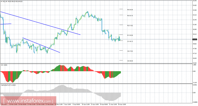 Уровни поддержки и сопротивления – красные горизонтальные линии.Материал предоставлен компанией InstaForex - www.instaforex.comТехнический анализ сырой нефти за 27 апреля 2017 года