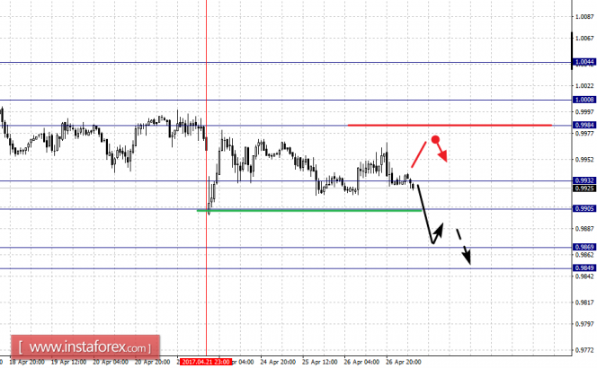 Краткосрочное восходящее движение возможно в коридоре 0.9984 – 1.0008, пробой последнего значения приведет к углубленной коррекции, здесь цель – 1.0044, этот уровень является ключевым сопротивлением для верха.