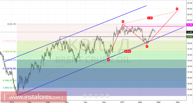 Технически до того момента, пока котировки фьючерсов на Brent находятся выше отметки в $52,9 за баррель, контроль над рынком сохраняют «быки». При этом прорыв сопротивления в виде верхней границы предыдущего среднесрочного диапазона консолидации ($57,3) с последующим обновлением январского максимума активирует паттерн AB=CD. Его таргет на 161,8% расположен вблизи отметки в $64 за баррель.