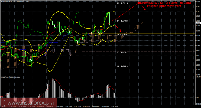 Красная линия и гистограмма с белыми барами в окне индикаторов.Материал предоставлен компанией InstaForex - www.instaforex.comТехнический анализ и торговые рекомендации по валютной паре GBP/USD на 28 июля 2017 года