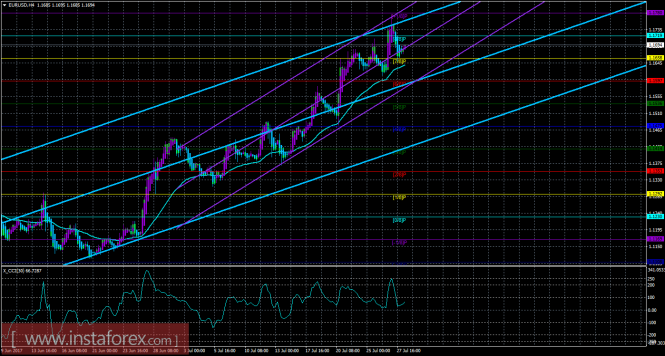 Красная линия и гистограмма с белыми барами в окне индикаторов.Материал предоставлен компанией InstaForex - www.instaforex.comТехнический анализ и торговые рекомендации по валютной паре EUR/USD на 28 июля 2017 года