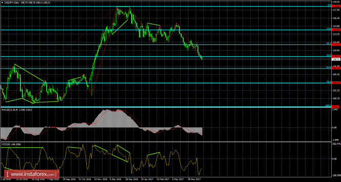 Уровни поддержки и сопротивления – красные горизонтальные линии.Материал предоставлен компанией InstaForex - www.instaforex.comАнализ Дивергенций USD/JPY на 17 апреля