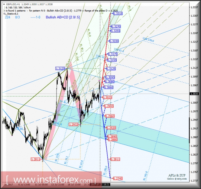 GBP/USD h1. Варианты развития движения с 25 июля 2017 г. Анализ APLs & ZUP
