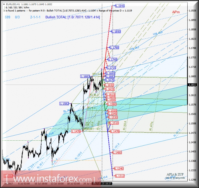 EUR/USD h1. Варианты развития движения с 25 июля 2017 г. Анализ APLs & ZUP