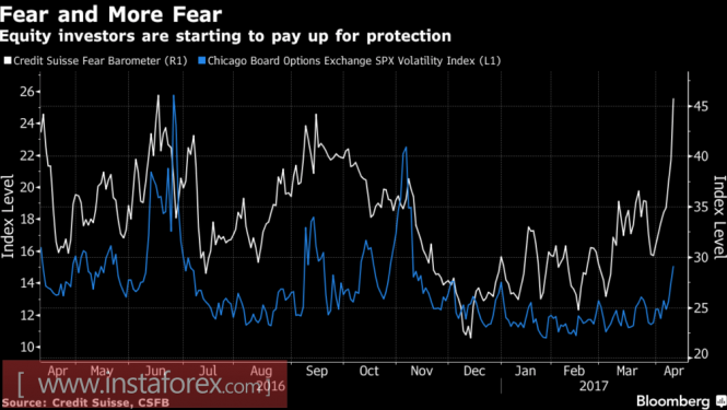Действительно, удары Вашингтона по Сирии и Афганистану ухудшили глобальный аппетит к риску, привели к росту индекса страха VIX до максимальной отметки со времен президентских выборов в США, в то время как стоимость хеджирования от коррекции S&P подскочила до пиковых значений с даты референдума о членстве Британии в ЕС.
