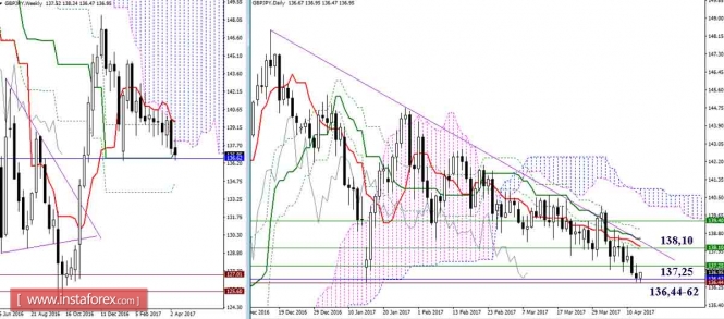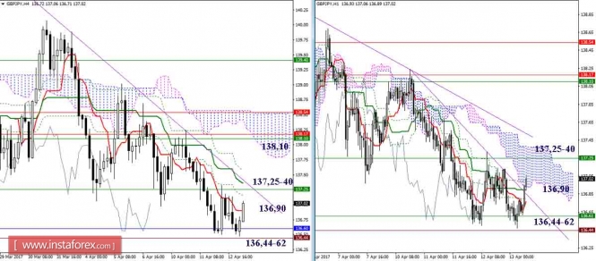 Материал предоставлен компанией InstaForex - www.instaforex.comДневной обзор GBP/JPY и EUR/JPY на 13.04.17. Индикатор Ишимоку