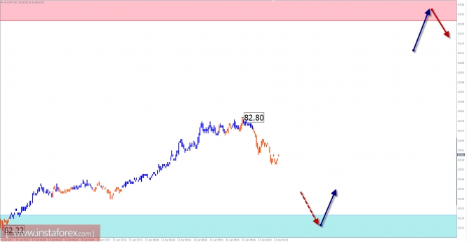 Пояснения к рисункам: Отмеченные на графиках зоны используются как критические участки, в которых значительно повышается вероятность смены направления движения. Чем ближе стрелка к цене на рисунке, тем ранее ожидается ход инструмента в отмеченную сторону. Сплошным фоном стрелок отмечено ожидаемое направление, пунктирным - вероятное.